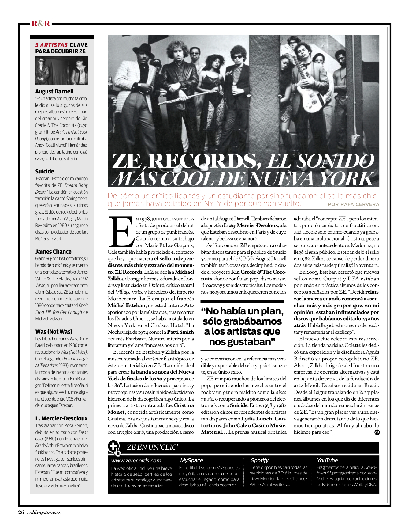 Rolling Stones Spain, january 2011, great article on ZE records. Thanks Spanish supporters !...> Read More... |