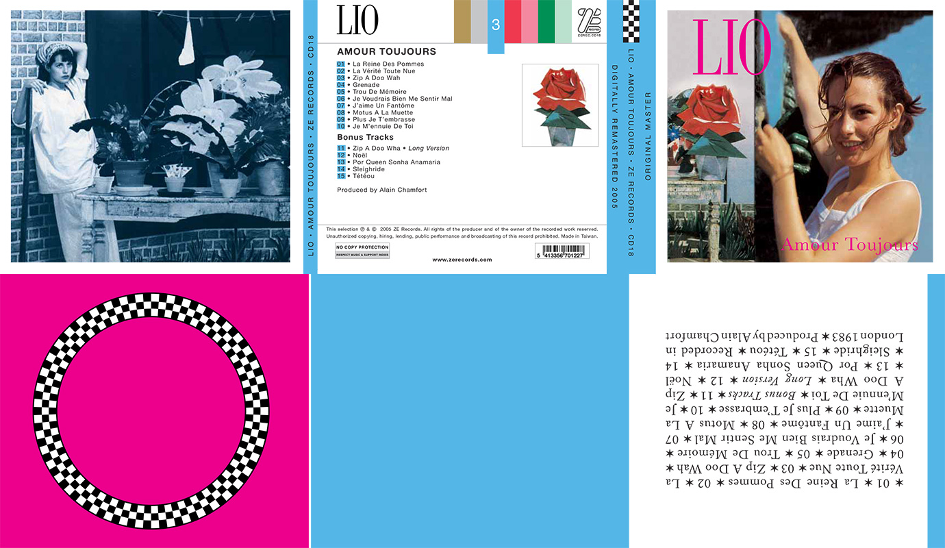 With its fine and delicate melodies, its daring but nevertheless gentle vocals, "Amour Toujours" falls within the scoop of purely traditional french songs; an ambiance perfectly displayed by famous photographer Robert Doisneau who shot the album cover and the pictures included in this booklet. On this new mellow music perspective, everywhere is felt the influence of producer Alain Chamfort who brings his whole variété background in Lio’s lolita universe. From this typicaly french association ensues a serie of sincere and touching songs (« La Vérité Toute Nue », « Je Voudrais Bien Me Sentir Mal », « Motus à la Muette ») where you can still notice the distinctive lyrics of words-lover Jacques Duvall. After the energetic effervescence of her first albums she showed her ability to follow another path, softer and milder.